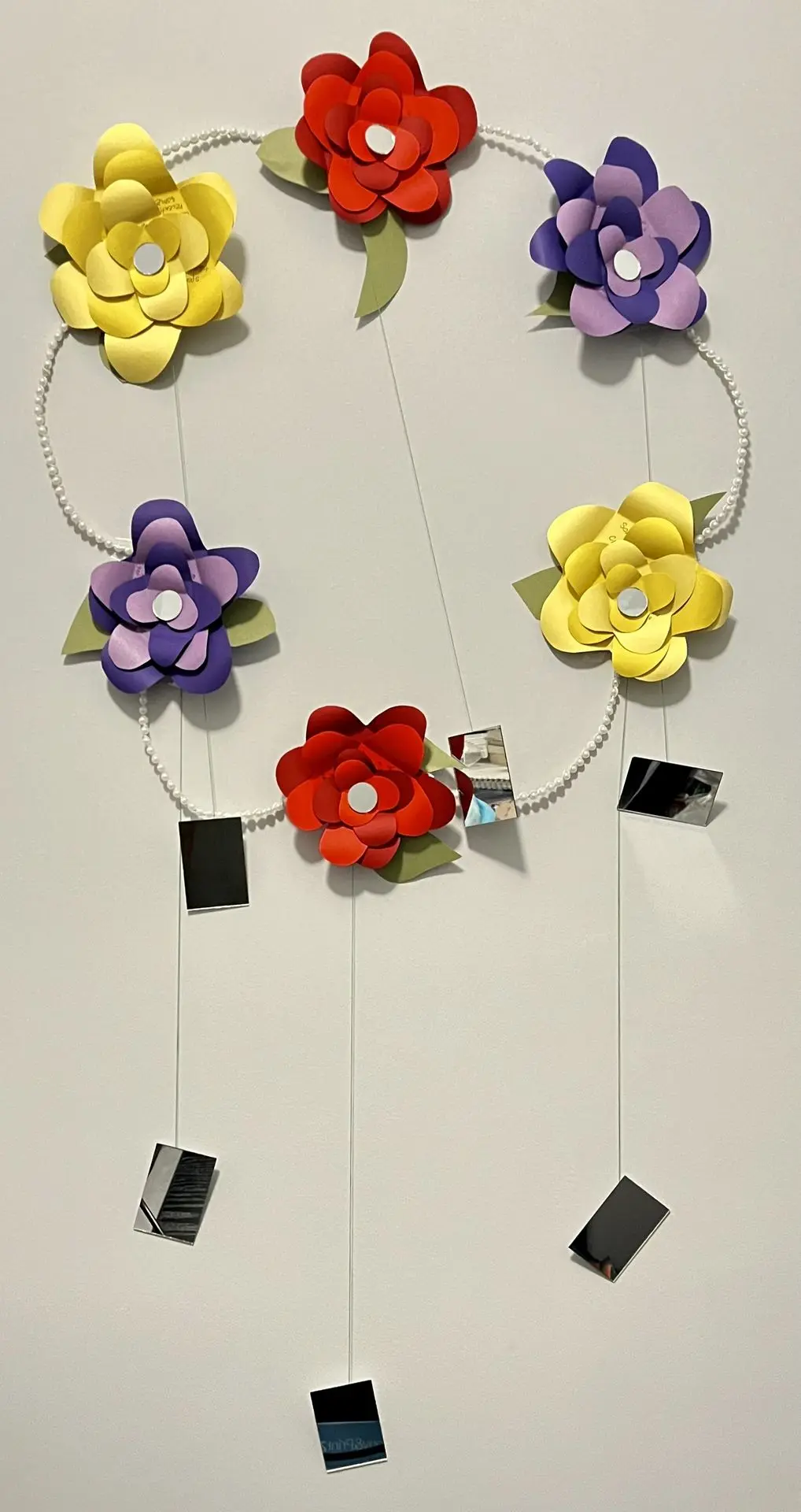 One's Reflection, 36" x 24", Sculpture of mirrors, paper, and string, September 2023